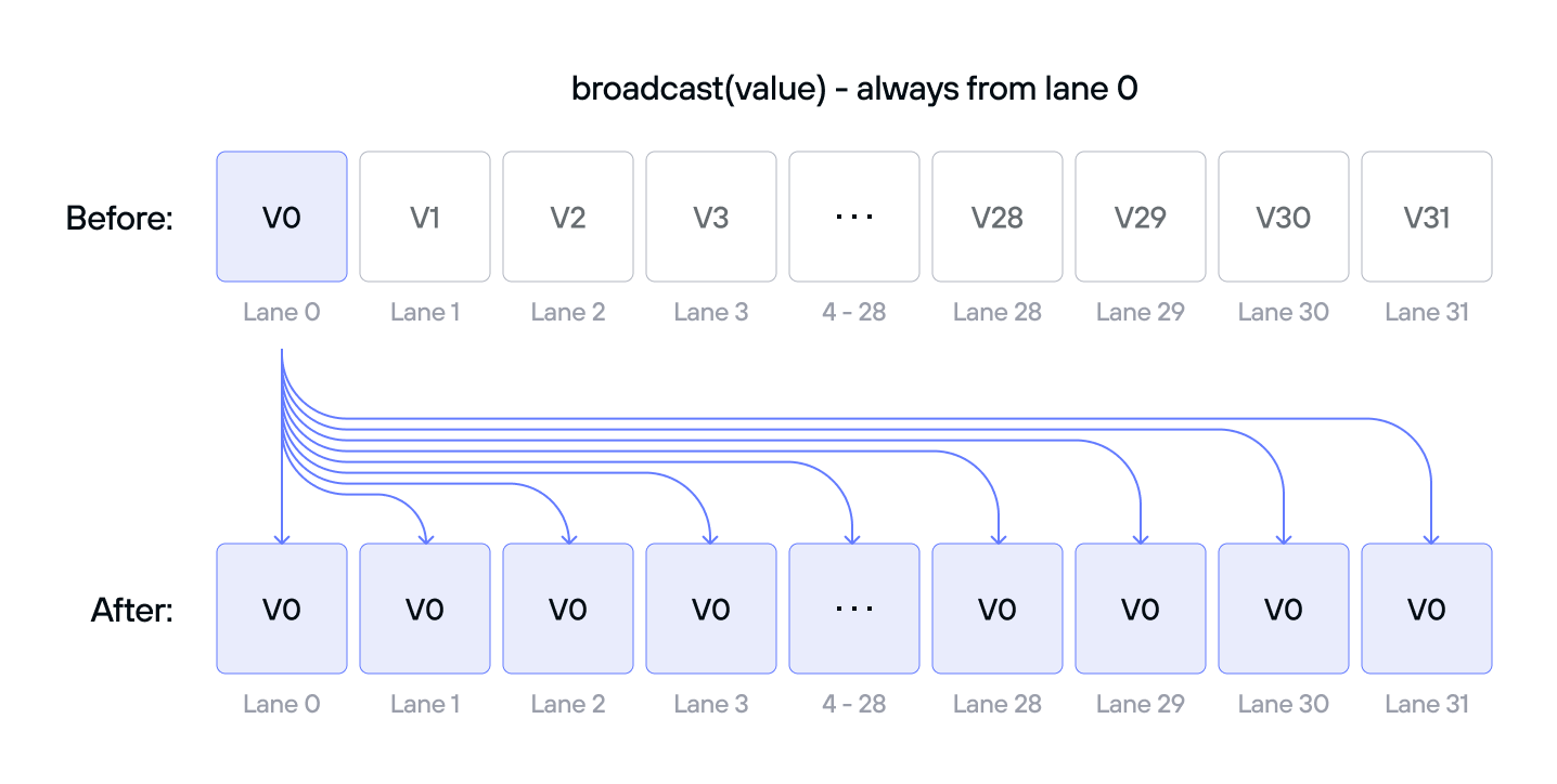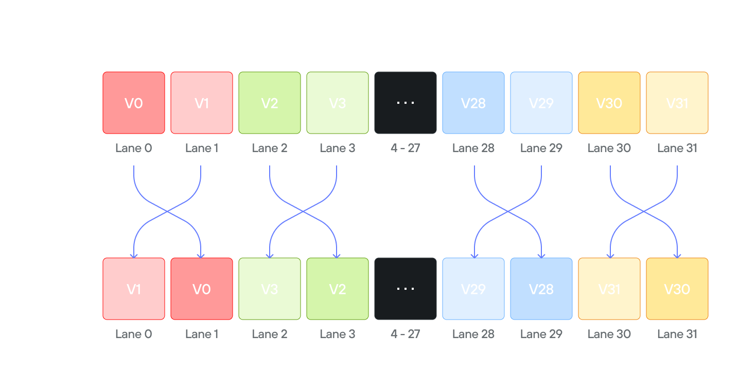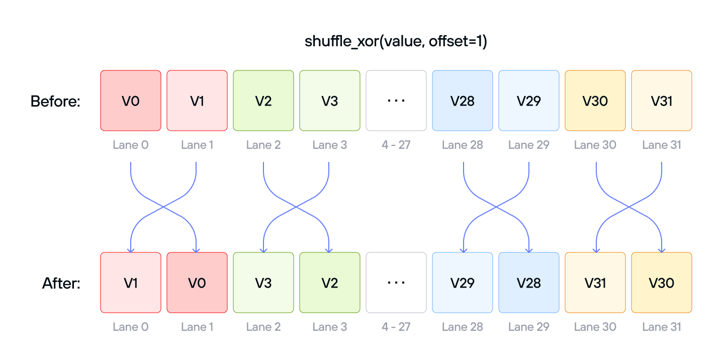 This hierarchical approach mirrors the GPU's architecture. Intra-warp communication is extremely fast, while cross-warp communication is more expensive.