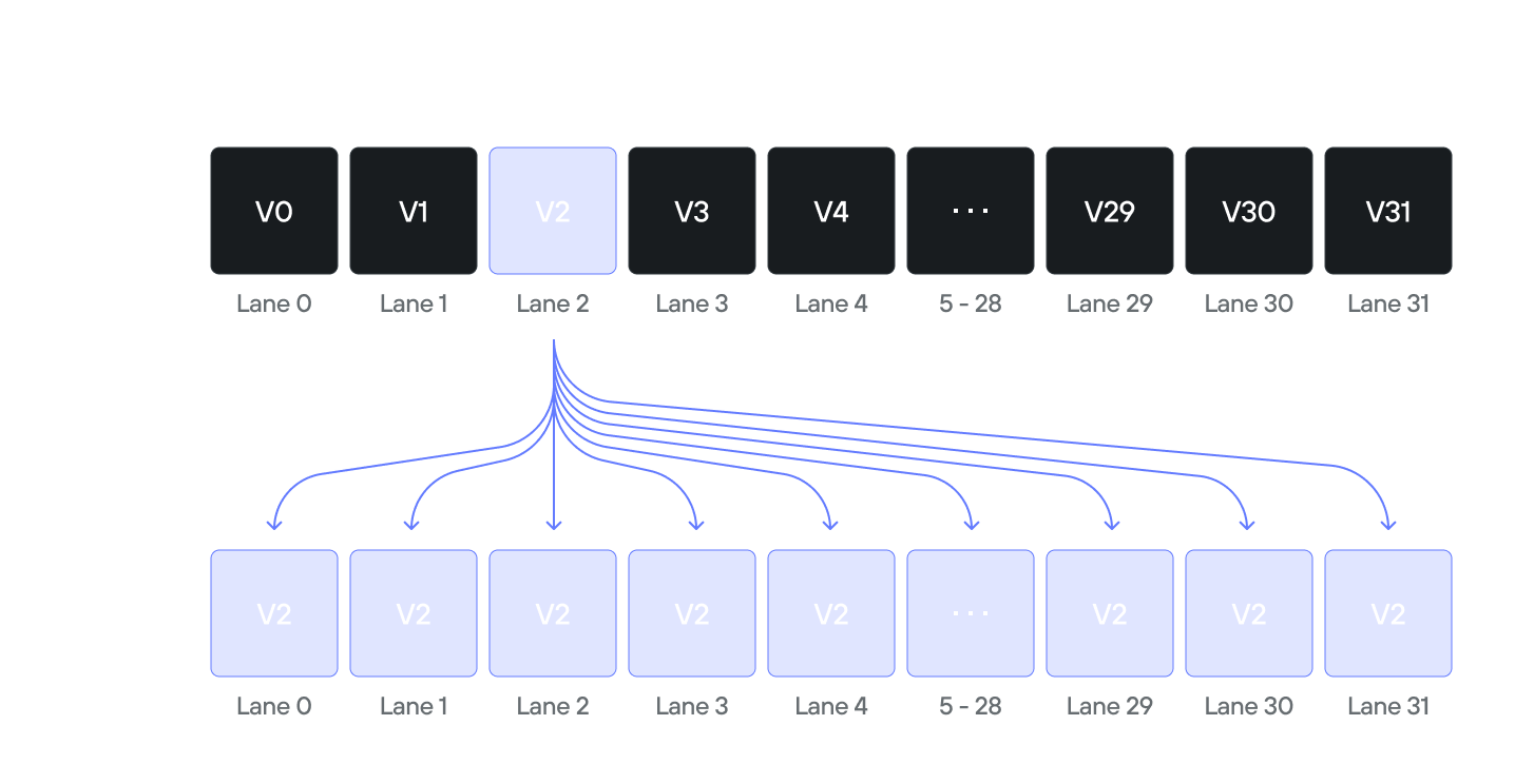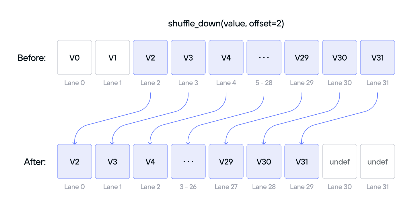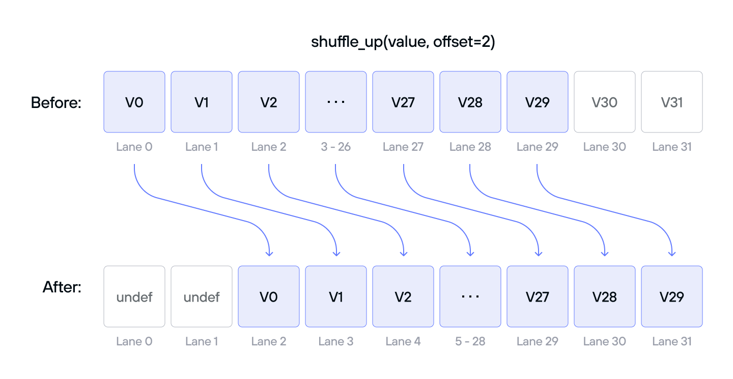 var result = shared_data[some_index] # Now safe to readAnd here's an example where syncwarp() is not needed (shuffle operations):
