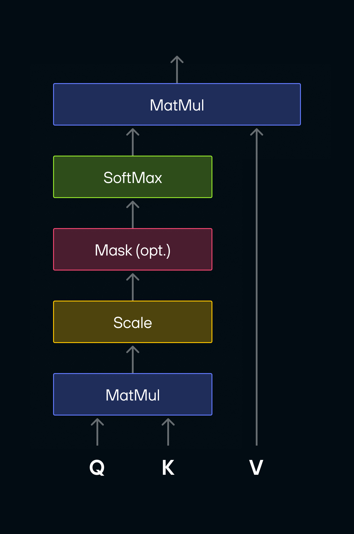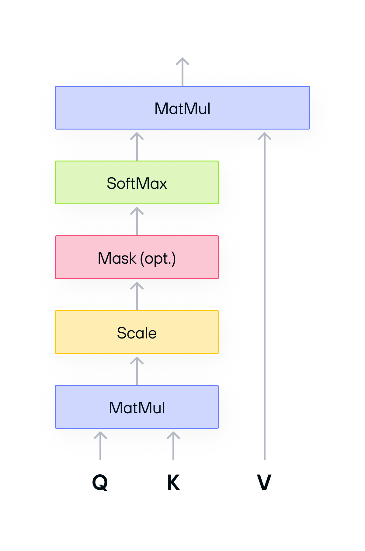bmm:Q x Transpose(K)whereQ,Kboth have shape[batchSize, numHeads, S, d]andQ x K^thas the shape[batchSize, numHeads, S, S]softmaxbmm:softmax(Q x K^t) x Vwhere V has the shape[batchSize, numHeads, S, d]